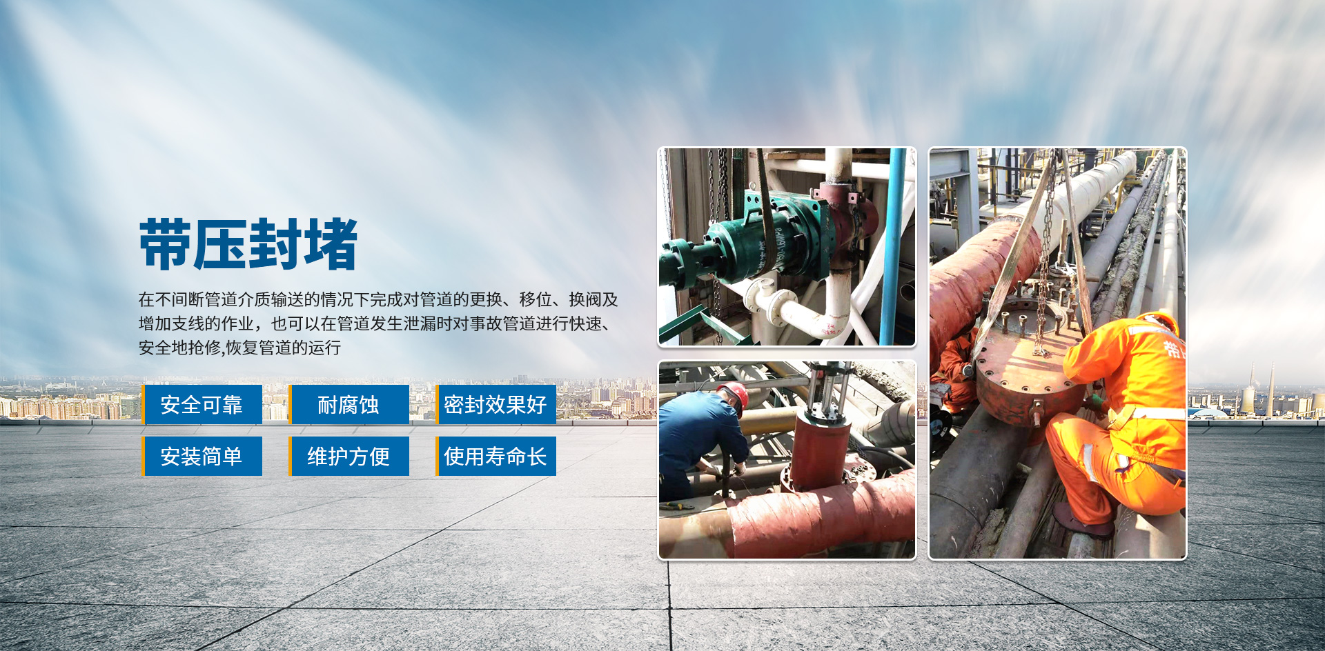公司擁有堵漏工程技術專家,施工管理人員及施工技術工藝和專業的施工隊伍,成功解決了石油、化工、冶金、熱電、化纖、供熱、供氣等企業突發性泄漏問題,挽回了企業因泄漏而造成的巨大損失。工程施工已涉足民用建筑、水利水電、市政、橋梁、隧道、煤炭礦山、電力化工、軍工航天、核工業等行業,工程業績遍布全國各地。在承接高難度工程和 重點工程中都以工程質量保證、安全率高、信譽好贏得廣大客戶的一致好評。